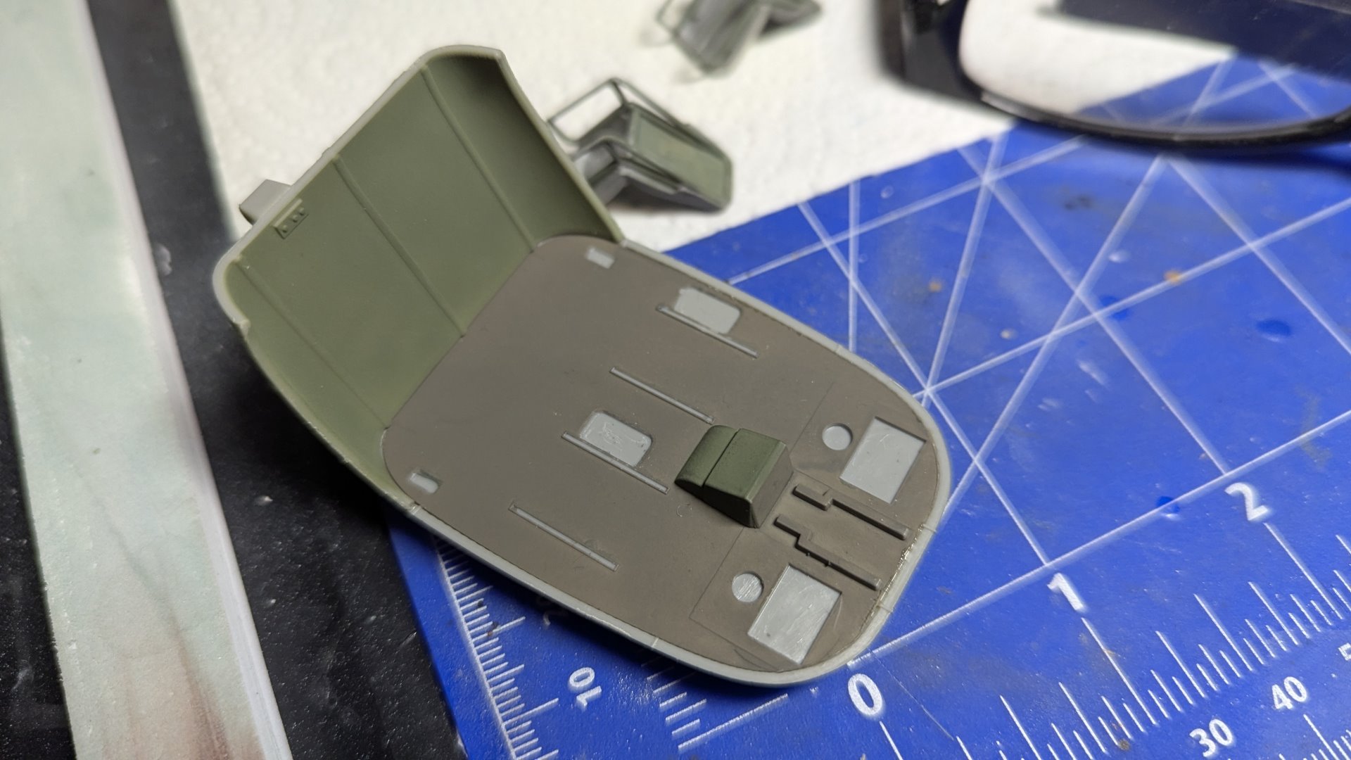 Heute nur mal ganz kurz: Ich hatte in meinem letzten Post zur Alouette II von Revell ja schon angedeutet, dass ich verschiedene Punkte im Cockpit mit Maskierflüssigkeit abgedeckt hatte, um sie von Farbe frei zu halten. Heute früh habe ich die Maskierung noch rasch entfernt, bevor ich zur Arbeit gefahren bin. Das Ergebnis kann sich sehen lassen: