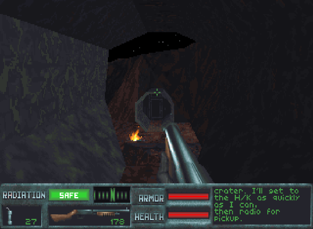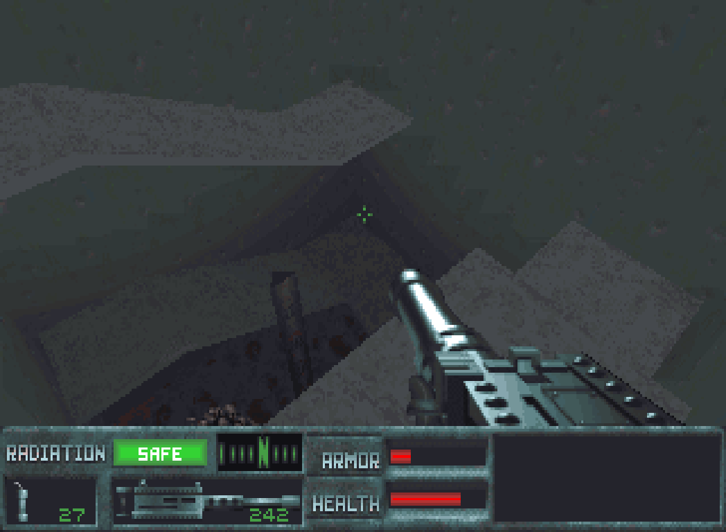 Besonders perfide: Wenn man die letzte Plattform verfehlt und auf dem Schachtboden landet, dann wird man radioaktiv verseucht und nippelt ab, weil man aus dem Loch nicht mehr rauskommt.