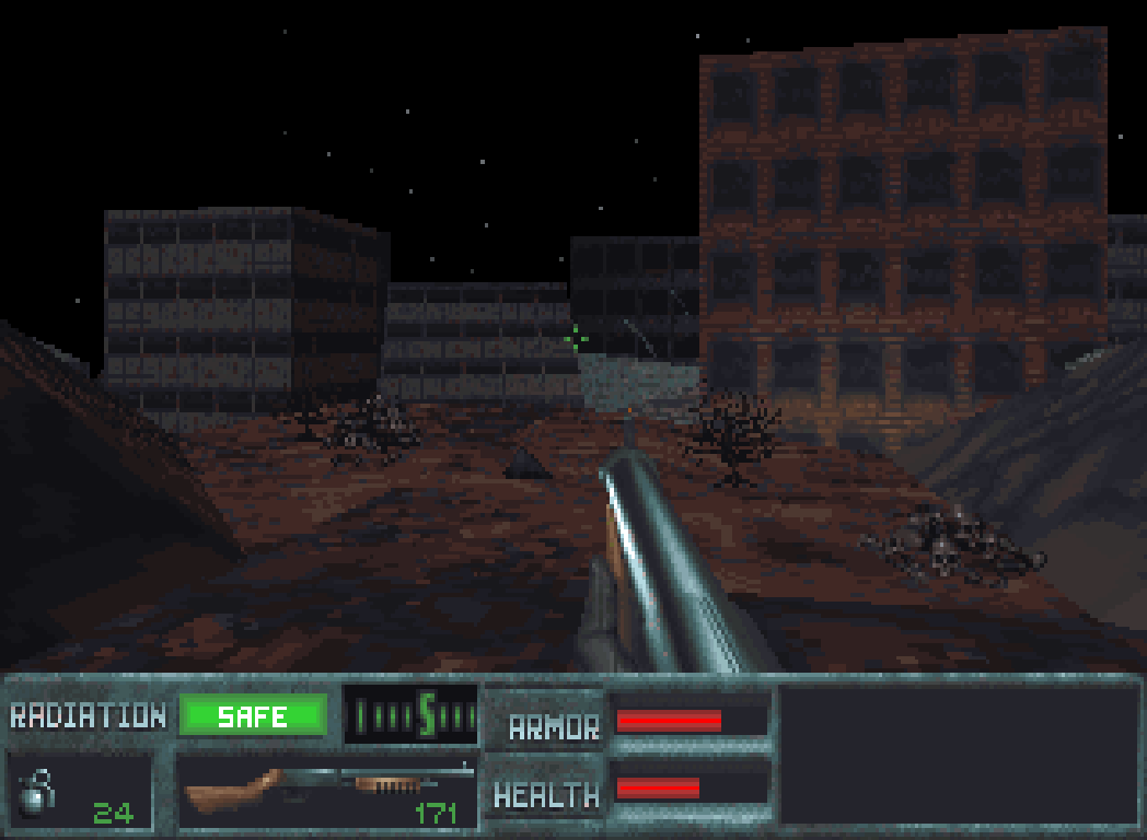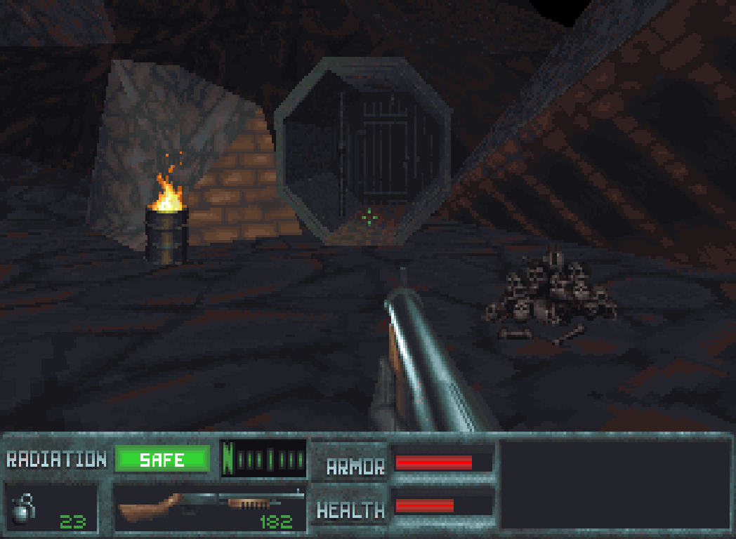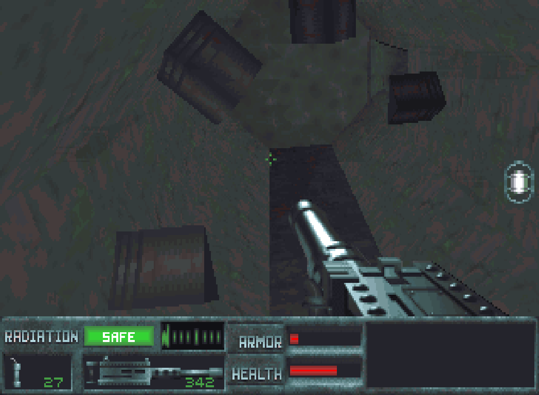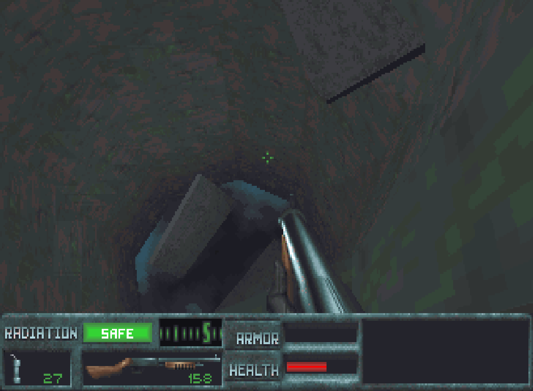 Besonders perfide: Wenn man die letzte Plattform verfehlt und auf dem Schachtboden landet, dann wird man radioaktiv verseucht und nippelt ab, weil man aus dem Loch nicht mehr rauskommt.